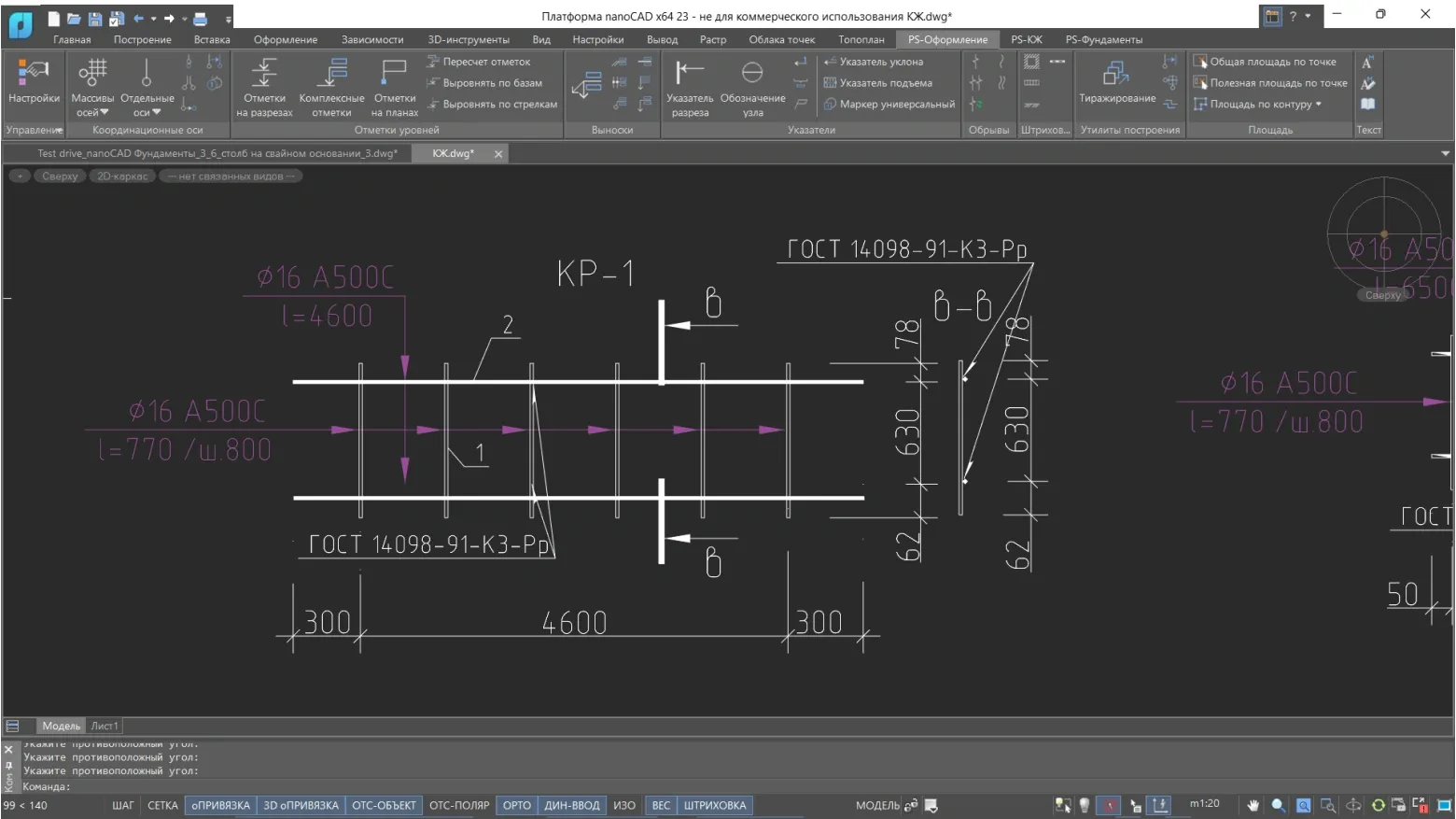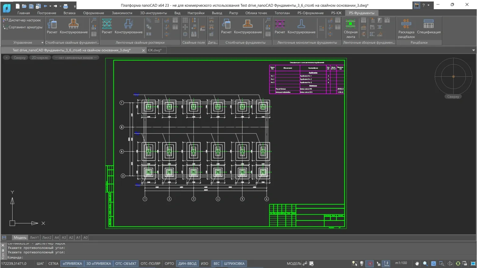 Подготовка схем расположения и чертежей столбчатых фундаментов на свайном и естественном основании.