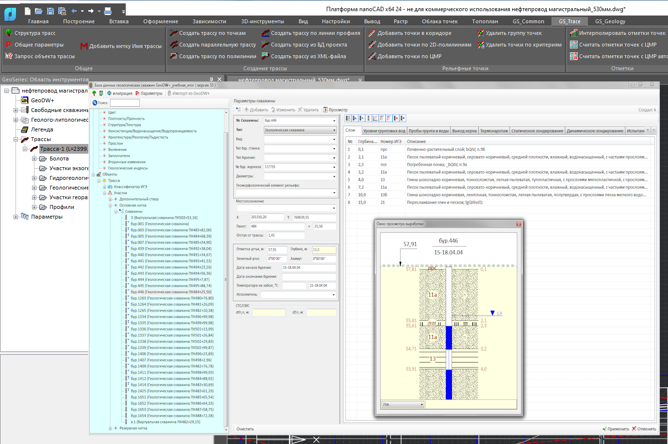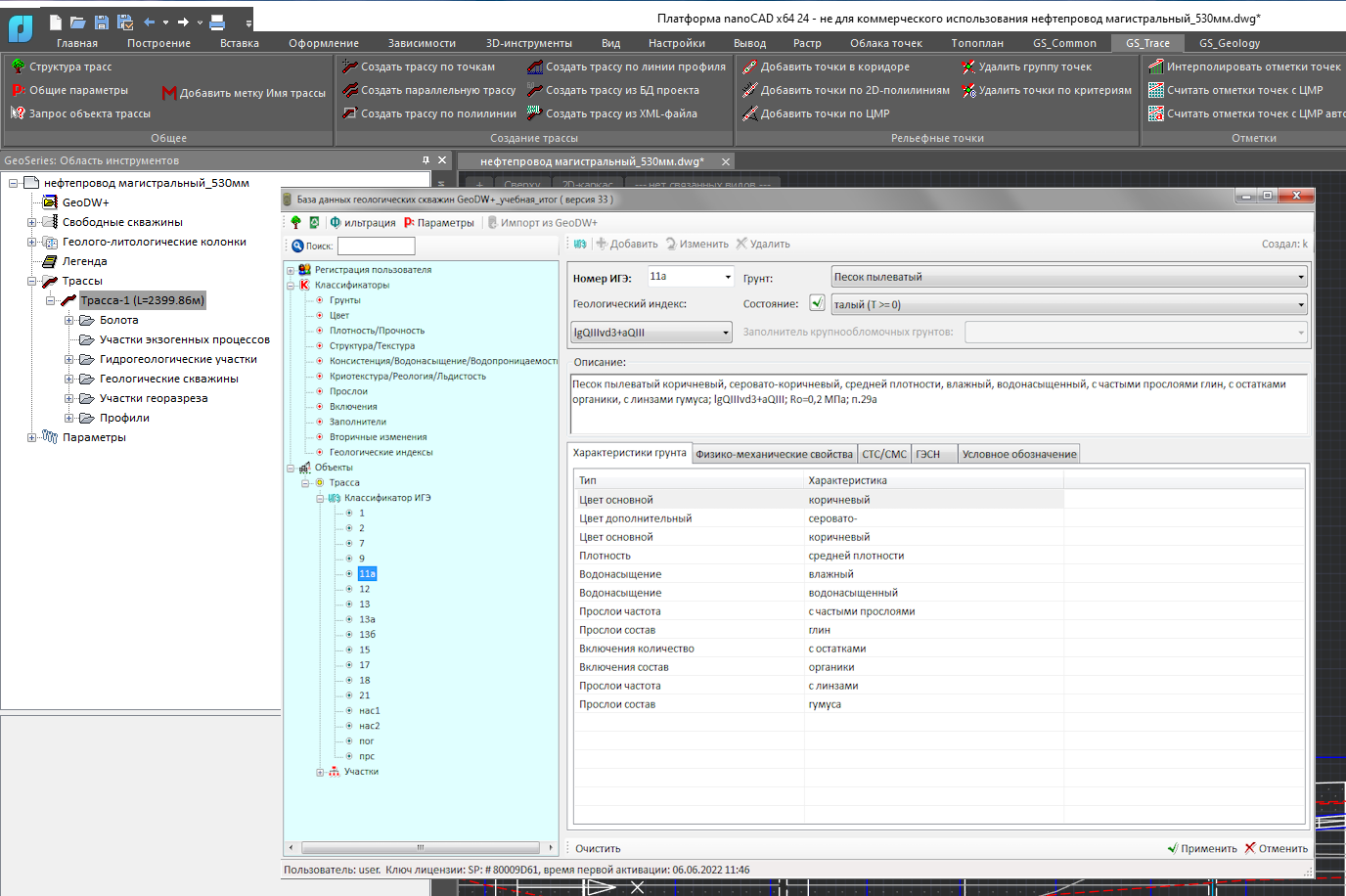 Создание и работа с инженерно-геологическими элементами, а также формирование их описаний с данными о грунте, расчет теплофизических характеристик мерзлых грунтов и статистическая обработка результатов лабораторных испытаний