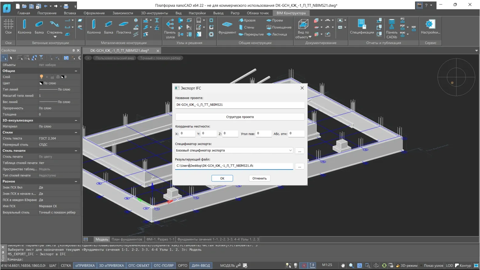 Экспорт данных в сторонние программные комплексы (SCAD/ЛИРА/ЛИРА САПР и т.д.) и внешние форматы (IFC, 3D PDF и др.).