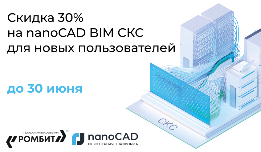 Скидка доступна на покупку 1-5 лицензий только для новых пользователей "nanoCAD BIM СКС" , у которых нет коммерческих лицензий продукта "nanoCAD BIM СКС", nanoCAD комплект Инженерия (прежнее название "nanoCAD Инженерный BIM") и "nanoCAD комплект Корпоративный"