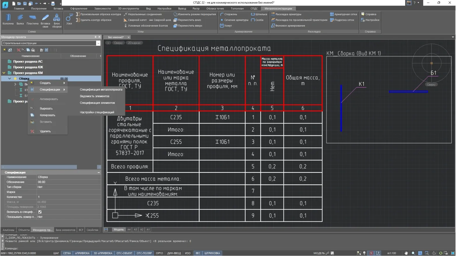 Позволяет создавать детализированные спецификации, выводить данные в нужном формате.