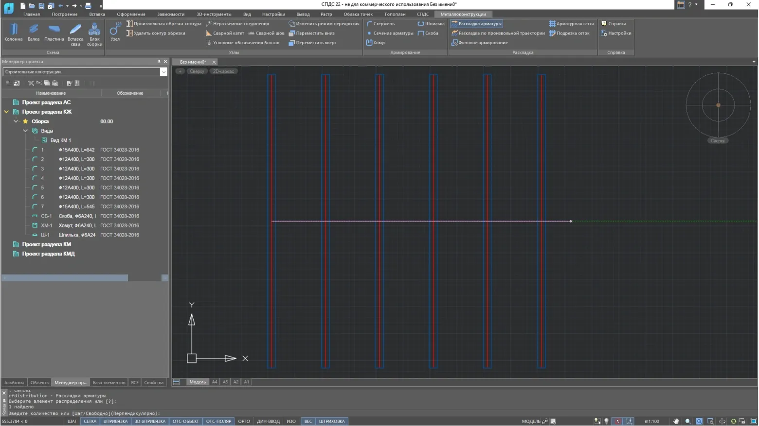 Позволяет проектировать расположение арматуры, обеспечивая оптимальное использование материалов и эффективность конструкции.