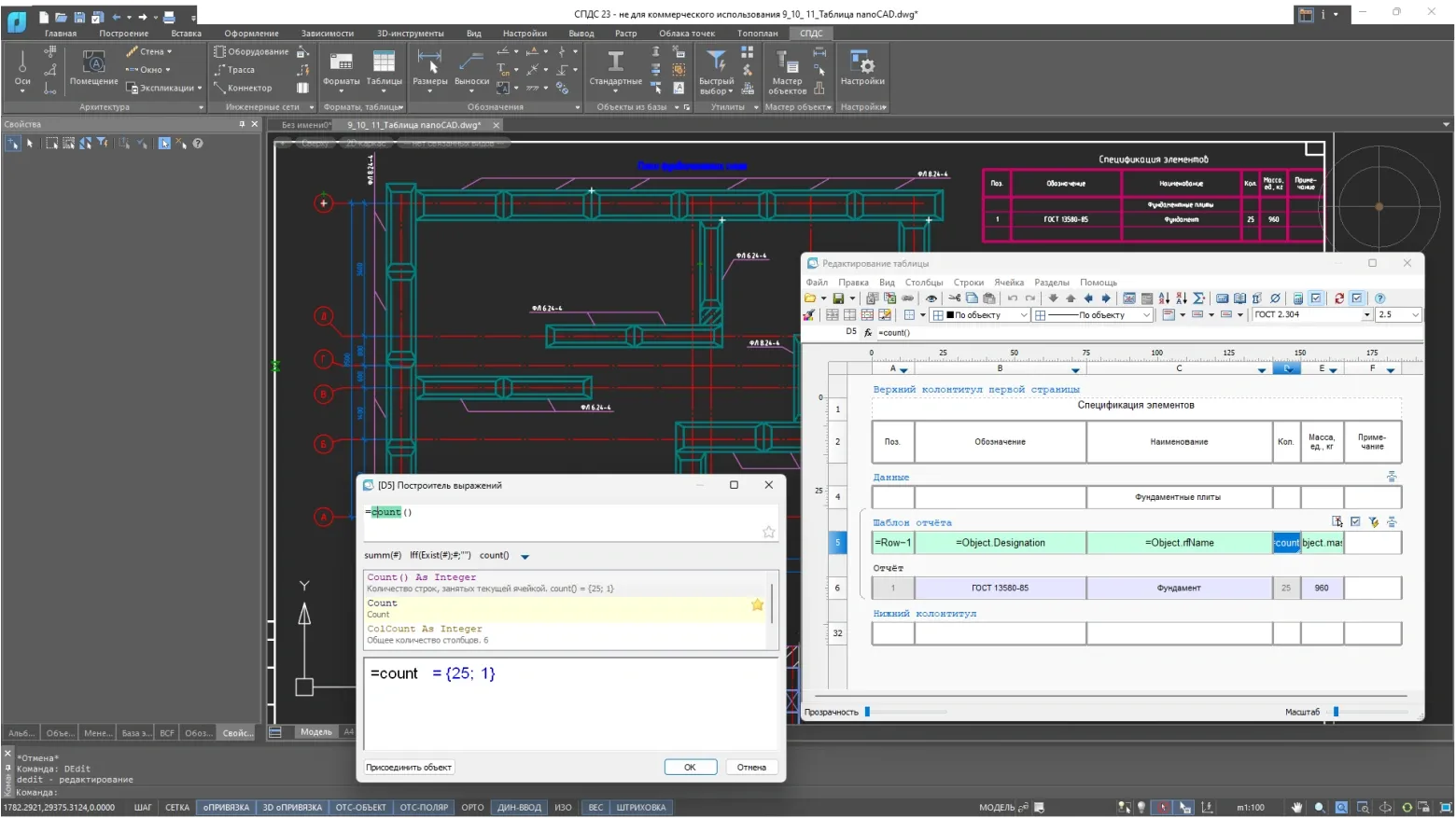 В модуле «СПДС» собраны самые полезные инструменты для автоматизации рутинных операций. Вы сможете объединить отдельные отрезки и тексты в таблицу nanoCAD, автоматически пронумеровать любой объект чертежа, увеличить/уменьшить выделенную графику с помощью команды Копировать фрагмент или создать собственный объект с вычисляемыми свойствами