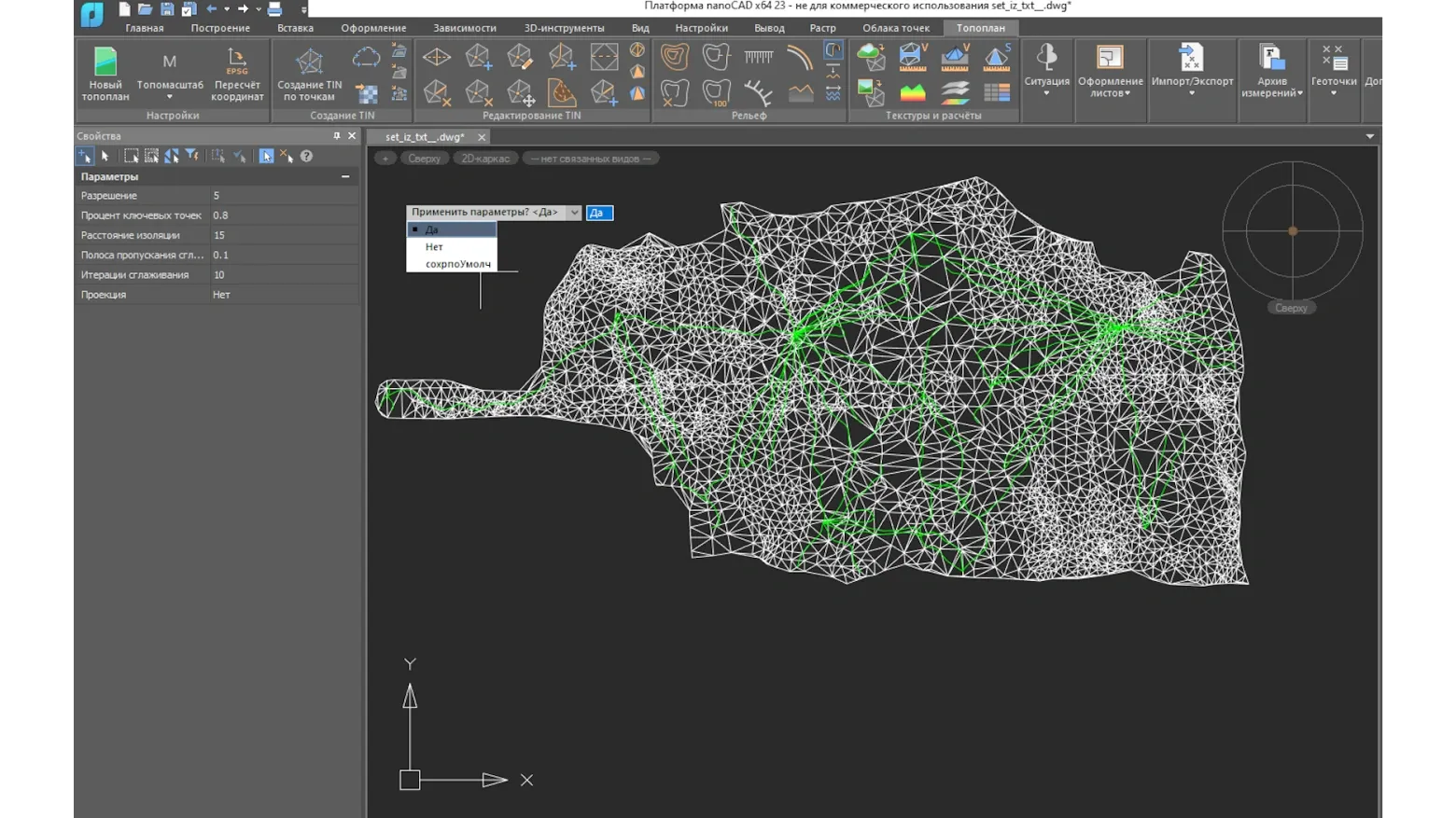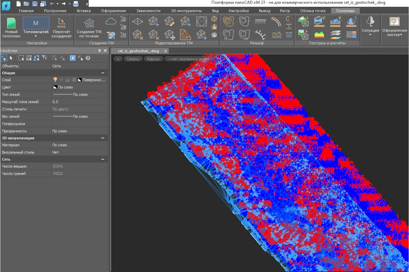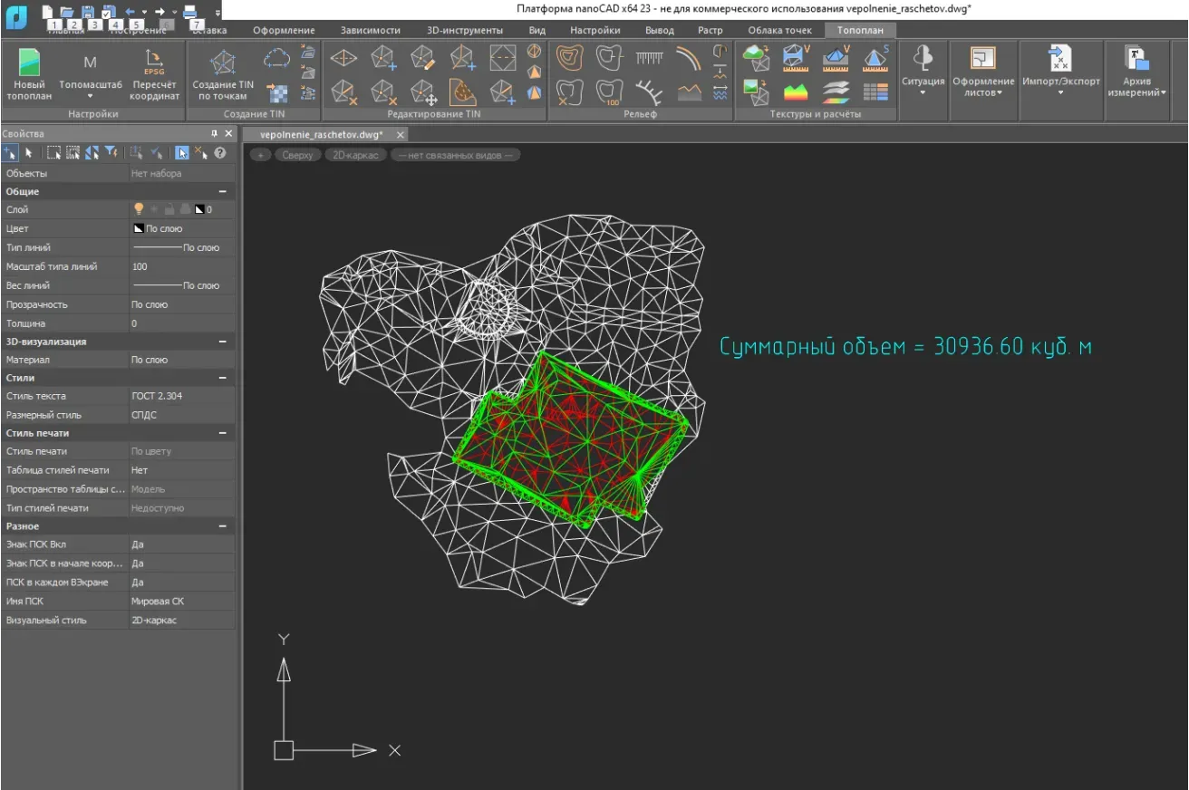 Объемы между моделями, объем поверхности, площадь участка поверхности, разность поверхностей. Включена функция формирования легенды с градиентной заливкой по высоте. Расчеты помогают определить объемы земляных работ, вычислить площади и провести анализ поверхностей для проектирования и планирования