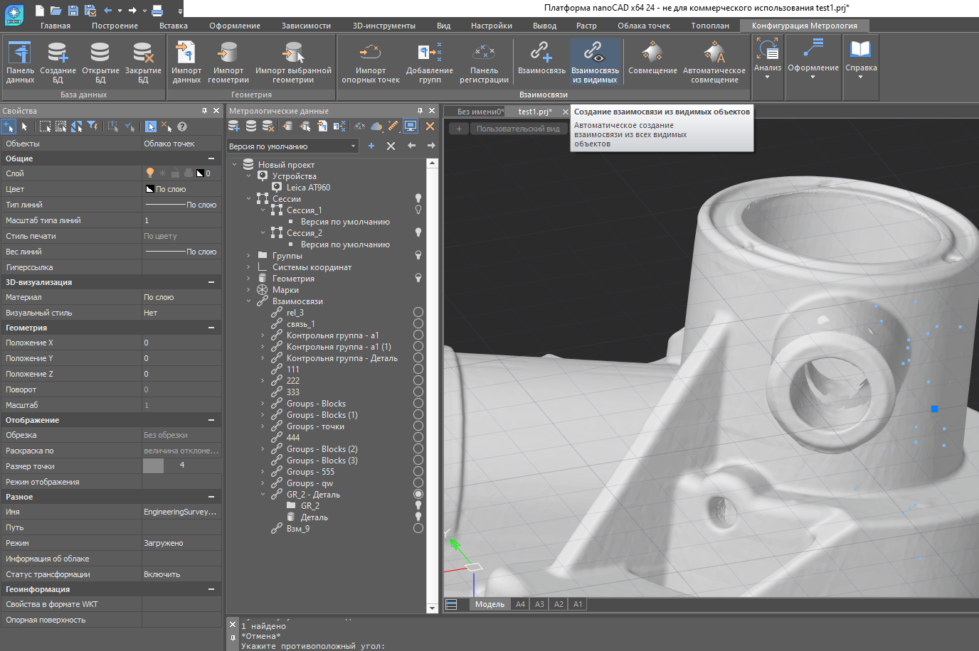 Измерения могут быть выполнены различными типами приборов (электронные тахеометры и теодолиты, лазерные и фотограмметрические сканеры, а также специализированное измерительное оборудование: лазерные радары, высокоточные трекеры, измерительные руки, КИМ и другие).